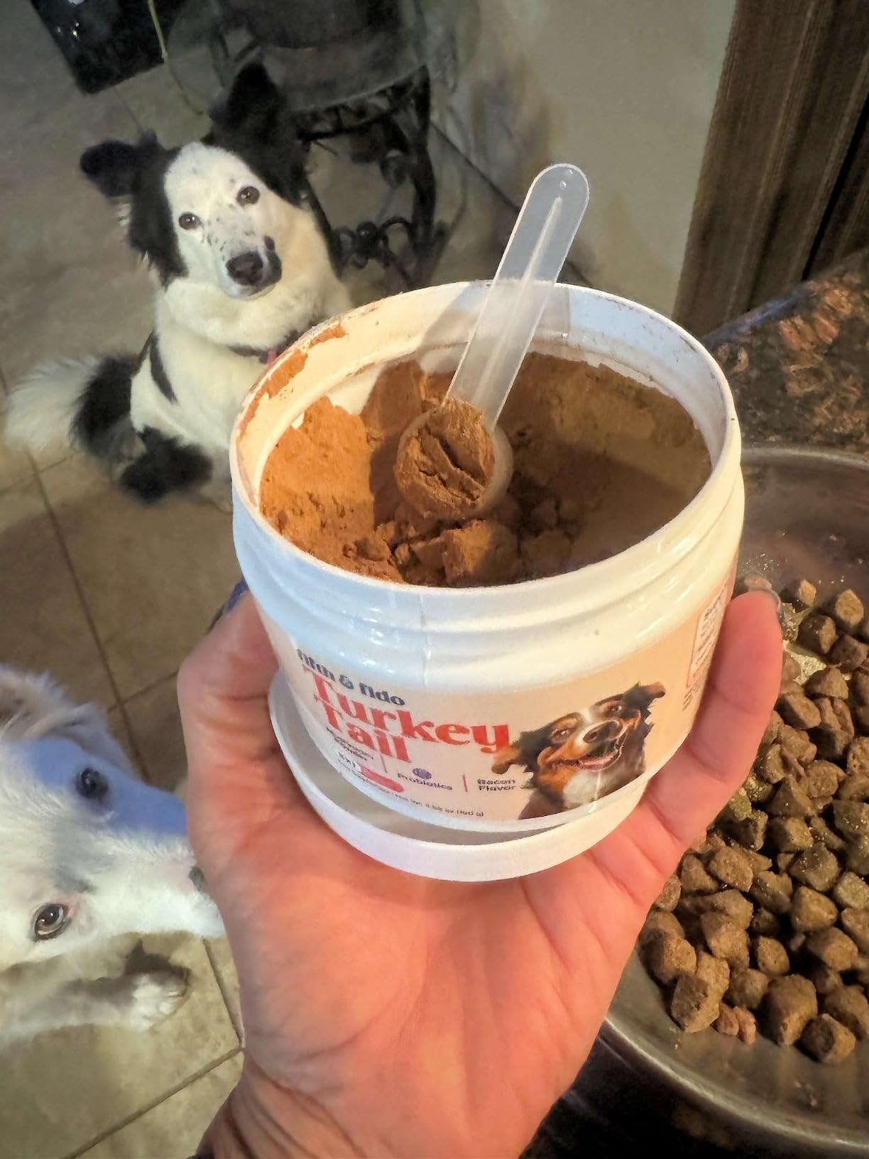 We know how challenging picky eaters can be! Turkey Tail+ has a flavor dogs love (bacon!), so it easily mixes into their food. Many customers report that even their fussiest pups take to it right away.