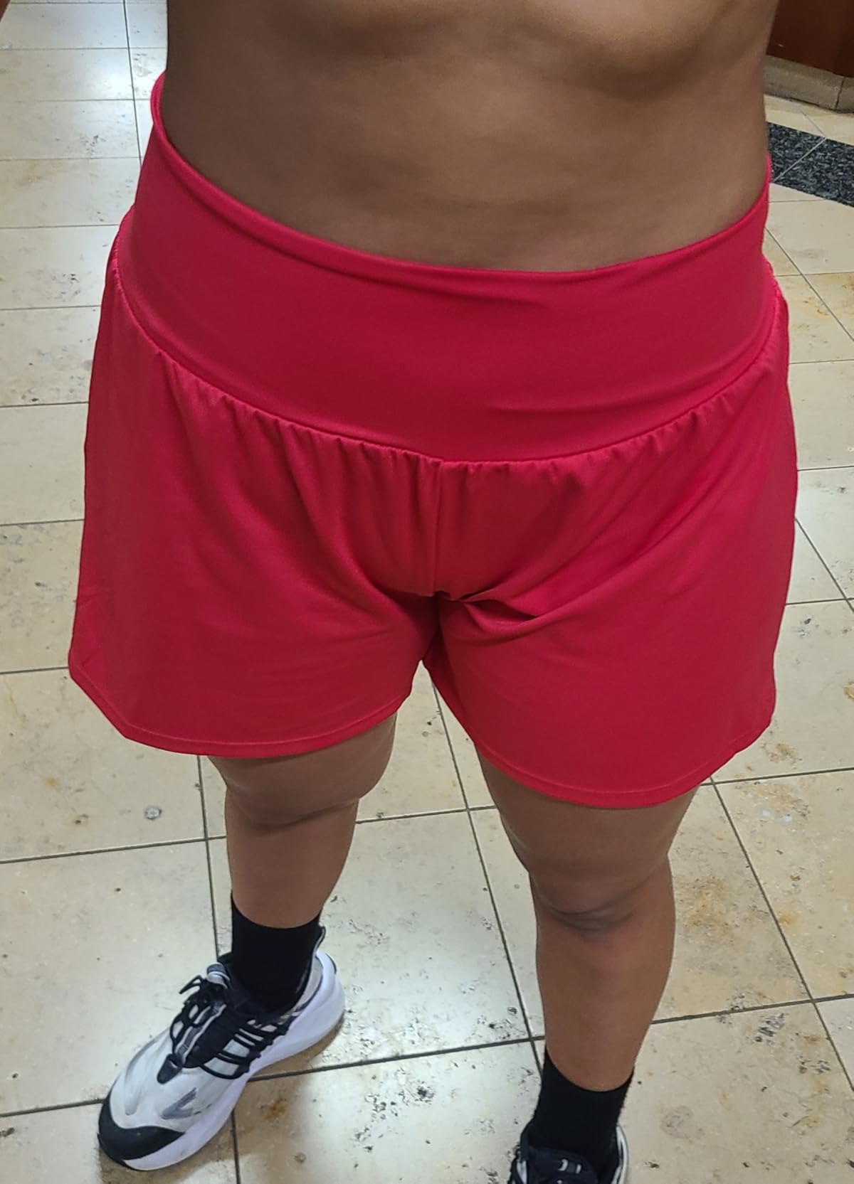 The 2-in-1 design combines smooth outer shorts with built-in inner shorts for extra support and confidence — no see-through moments, no adjustments needed.