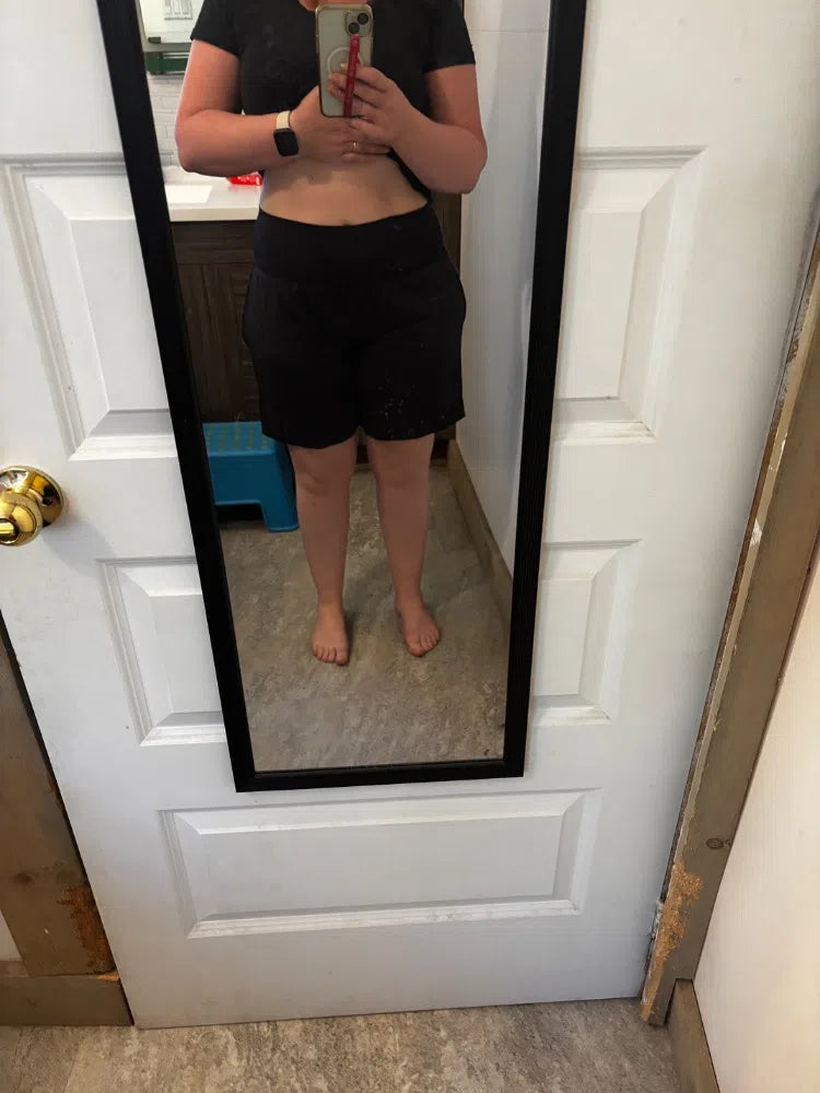 Yes! These shorts include two convenient pockets—one on the side and another in the back waistband—perfect for storing essentials like your phone, keys, or cards.